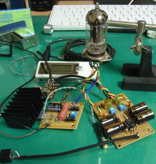 ÅŸ»Éô¤Î¥Ò¡¼¥¿ÅŸ»½ÐÎϤ˥ƥ¹¥¿¡¼¤òÅö¤Æ¤Æ¡¢½ÐÎÏü»Ò´ÖÅ۵¤¬6.3V¤Ë¤Ê¤ë¤è¤¦¤Ë¡¢VR1¤òÄ´À°¤·¤Þ¤¹¡£